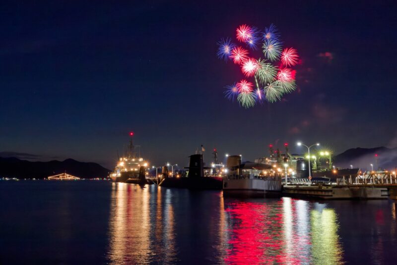 港に響き渡る轟音と光のコラボレーションは壮大で迫力も満点。