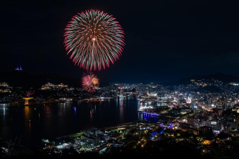 「世界新三大夜景」に再認定された長崎の夜景を背景とした花火は国内屈指の美しさを誇ります。