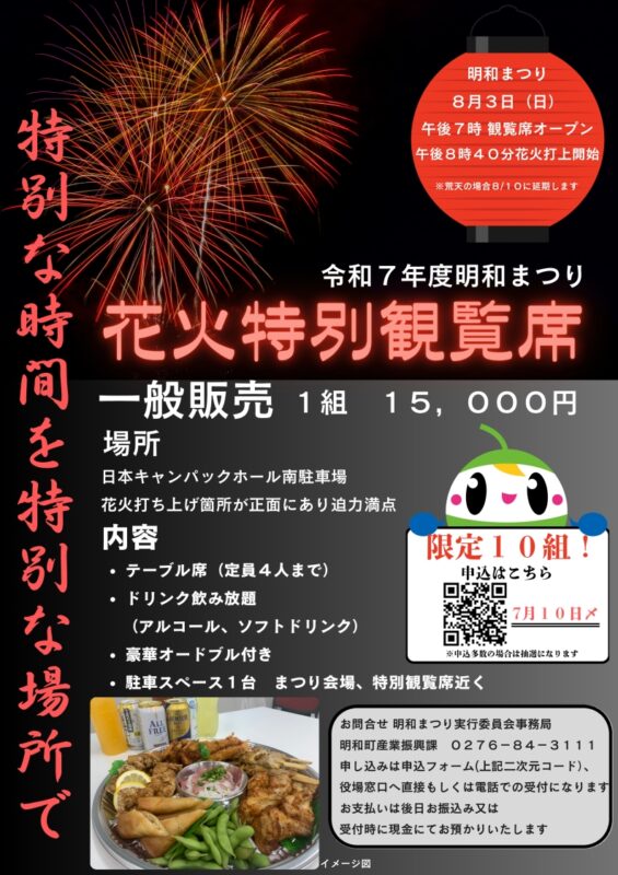 令和7年度 明和まつりの打ち上げ時間は20:40~21:00の予定。