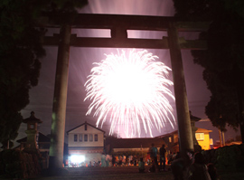 例年川まつりと同日開催で都農神社周辺には花火と川まつりを楽しむ人々が集います。