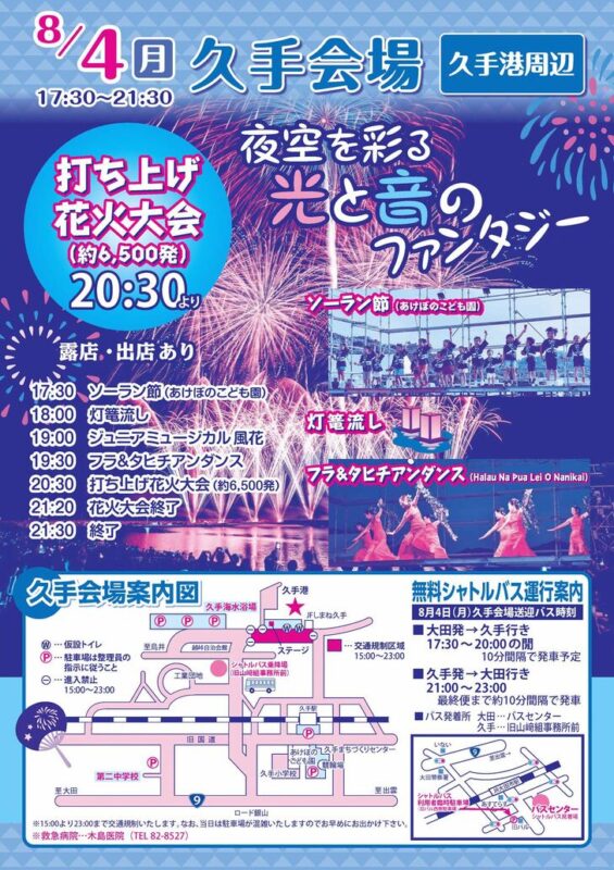 第43回 天領さん久手花火大会では無料シャトルバスが運行予定です。